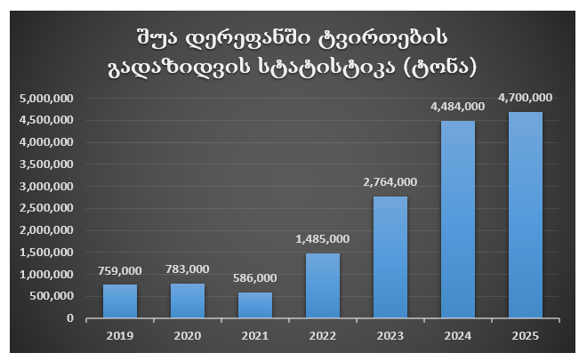 Data from the Ministry of Transport of Kazakhstan shows a steady increase in cargo traffic on this route: 759,000 tons in 2019, 783,000 tons in 2020, 586,000 tons in 2021, 1.485 million tons in 2022, 2.764 million tons in 2023 and 4.484 million tons in 2024. According to the Organization of Turkic States, the volume of cargo traffic along the Middle Corridor will reach 4.7 million tons in 2025.