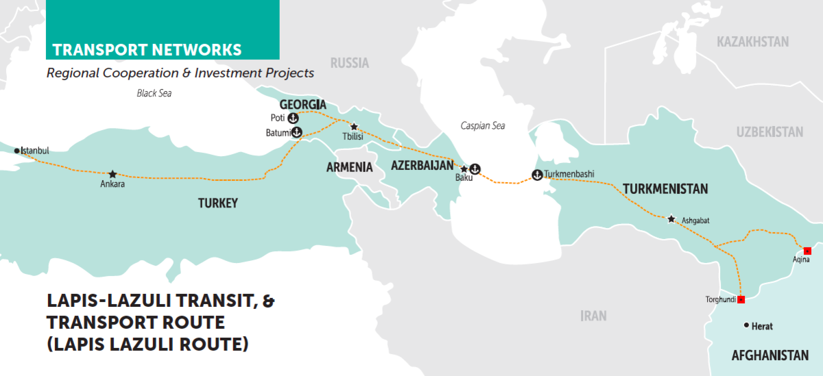 "ლაზულის დერეფანი ავღანეთის საგარეო ვაჭრობის ყველაზე პერსპექტიულ ალტერნატიულ მარშრუტად ითვლება. ამ მარშრუტის გასწვრივ მდებარე ქვეყნები ავღანური ძირითადი საქონლის - ჩირის, სამკურნალო მცენარეებისა და მინერალების დიდ ბაზრებს წარმოადგენენ“, - ნათქვამია აზერბაიჯანული მხარის მიერ გავრცელებულ განცხადებაში.