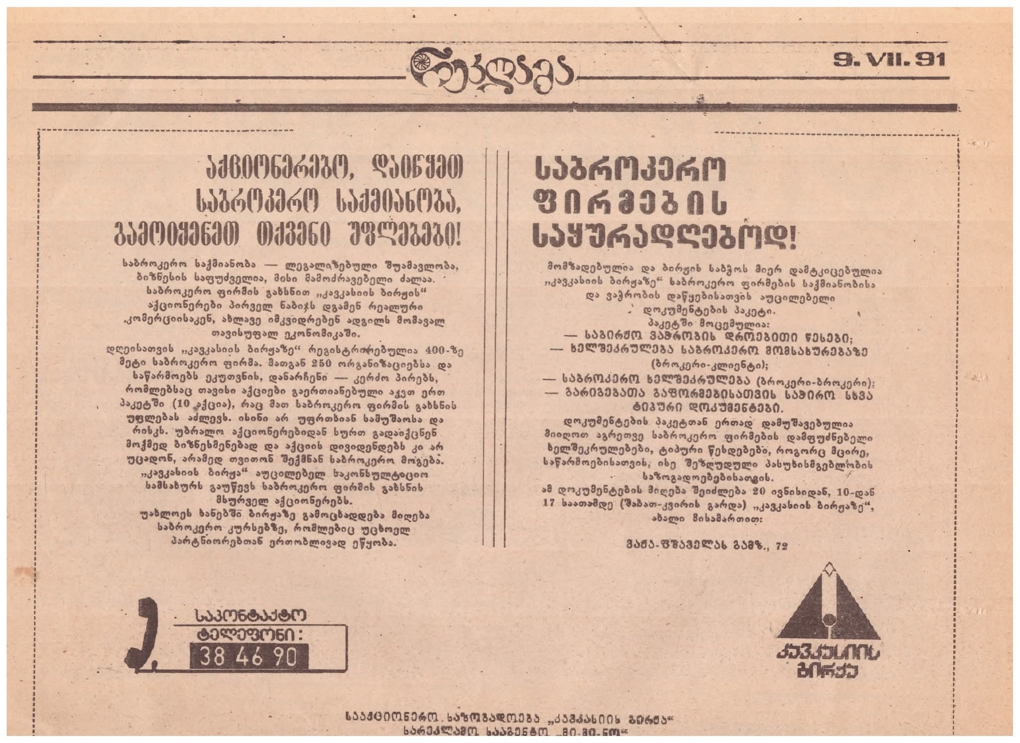 ევროპულ და აზიურ ჰოლდინგებს შორის მსხვილი სავალუტო გარიგებების ადგილიც "თბილისის სავალუტო ბირჟა" უნდა იყოს.